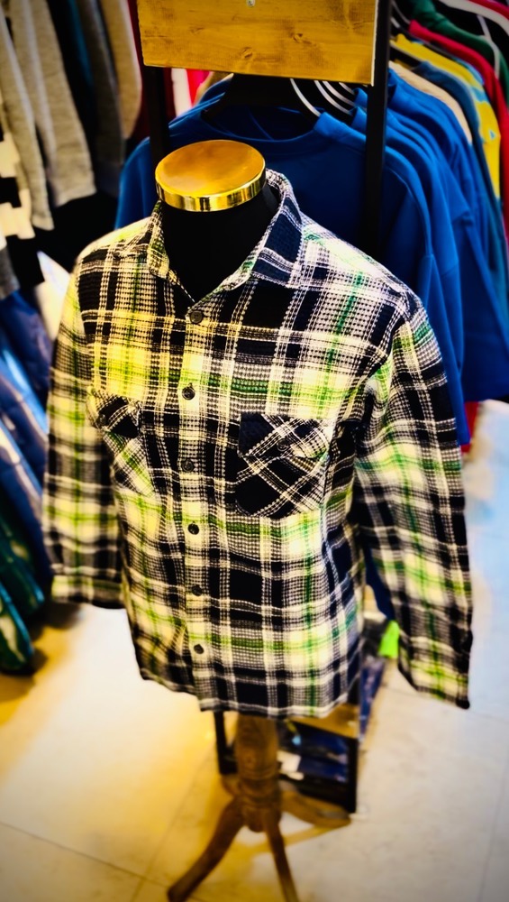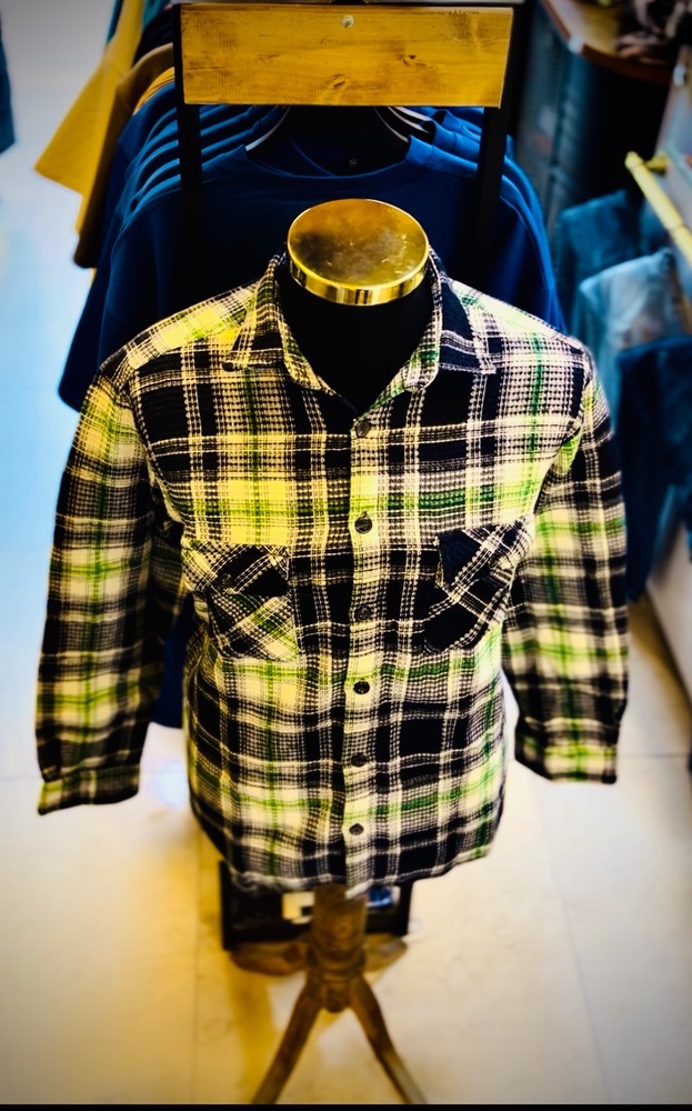 پیراهن پشمی تمام پنبه گرم بالا مدل چهارخونه _ سرمه ای سبز