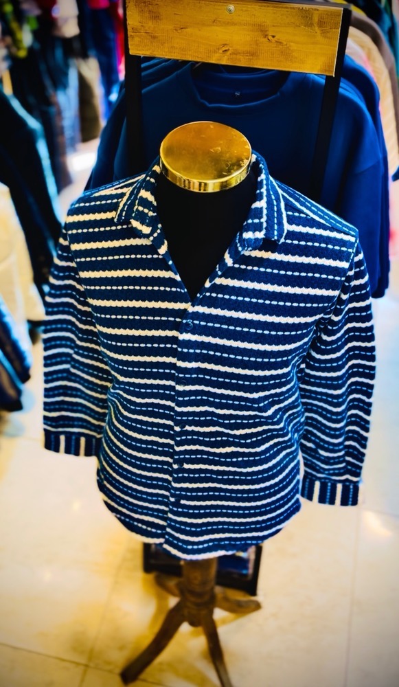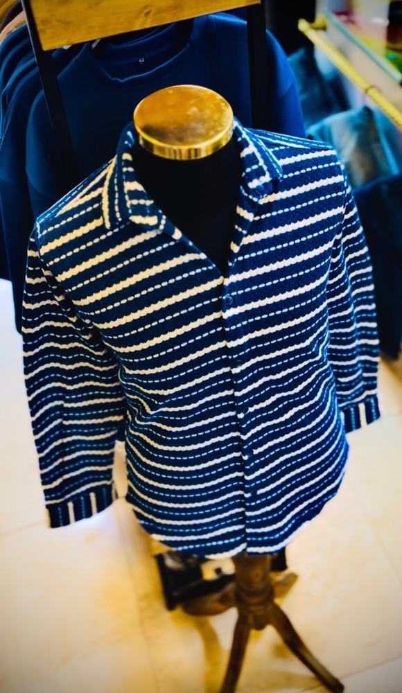 پیراهن بوکله تمام پنبه گرم بالا _ آبی