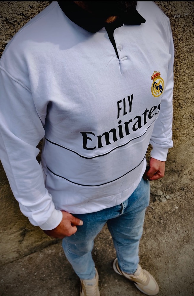 دورس تمام پنبه سه نخ داخل کرکی مدل یقه دار _ کیت رئال مادرید سفید