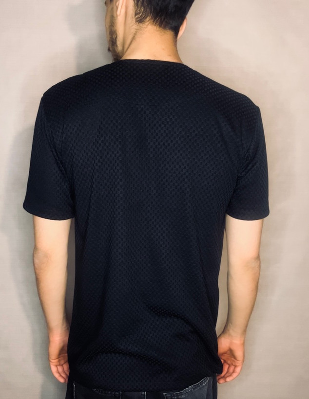 تیشرت پارچه مراکشی مدل یقه کوبایی _ مشکی شطرنجی